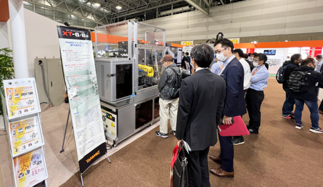 洗浄装置や計測装置など、ニーズに合わせて周辺装置を自由に組み合わせられることもポイントの一つ。ご来場者の中には、既存のTAKAMAZ設備への後付けを検討され、実機で動作を確認される方もいらっしゃいました。