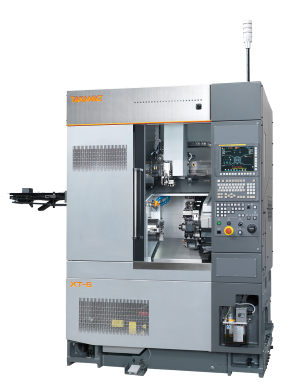 コンパクト設計の6インチCNC旋盤。高速送りと高い加工能力でサイクル短縮を実現し、自動化ローダ対応と熱変位補正により量産精密加工に最適。