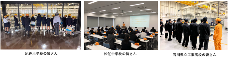2023年度は、白山市立旭丘小学校、内灘町立内灘中学校、金沢市立工業高等学校、石川県立工業高等学校、石川工業高等専門学校、金沢大学の工場見学を受け入れました。