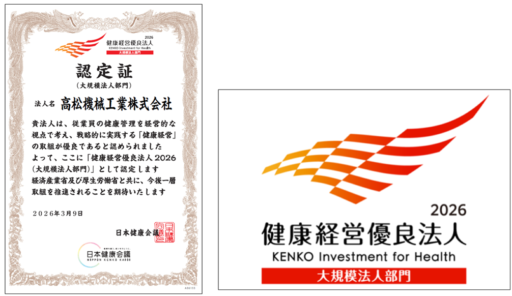 当社は本年も「健康経営優良法人2026(大規模法人部門)」に認定されました。本制度は、特に優良な健康経営を実践している法人を顕彰する制度です。今回は健康経営の方向性を整理するため戦略マップを作成した点や、指標データを用いて取り組みを可視化し、課題を確認しながら継続的に改善している点が評価されました。あわせて、社員の心身の健康維持・向上を目的としたセミナーや健康指導などを実施しています。これからも社員と会社の持続的な成長を目指し、健康経営に努めてまいります。